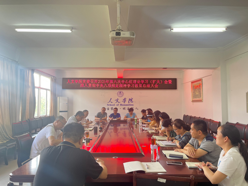 9月19日,人文学院党委在钩深楼南楼414会议室召开2025年第6次中心组理论学习(扩大)会暨深入贯彻中央八项规定精神学习教育总结会,学院班子成员、党委委员、科级干部、党支部书记等参加。会议由学院党委书记邓清华主持。
