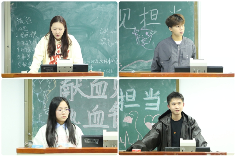 为进一步弘扬“无私奉献、助人为乐”精神,普及无偿献血知识,引导青年学生社会主义核心价值观。10月26日,人文学院在正心楼、崇礼楼教室组织开展“献血见担当,热血铸希望”主题团会,2023级、2024级、2025级全体学生参加。