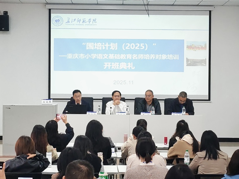 11月4日,国培计划(2025)重庆市小学语文基础教育名师培养对象培训在我校顺利开班,来自全市各区县的50名小学语文骨干教师齐聚一堂,正式开启为期30天的培训学习之旅。学校党委常委、副校长米永生,乡村振兴培训学院(教育培训学院、继续教育学院)院长李林,人文学院院长彭福荣,培训项目负责人张红兵,班主任马亚菊及全体培训学员参加开班仪式。
