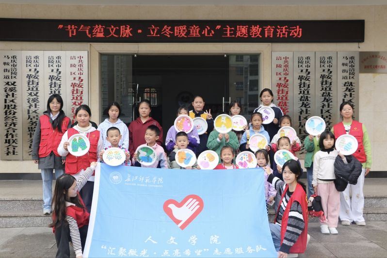 文化是民族的血脉,是人民的精神家园。为进一步引导社区少年儿童感知时节之美、体悟文化之韵,增强文化认同感与民族自豪感。11月7日,人文学院组织青年志愿者到涪陵区马鞍街道盘龙社区青少年之家开展“节气蕴文脉·立冬暖童心”公益课堂活动。