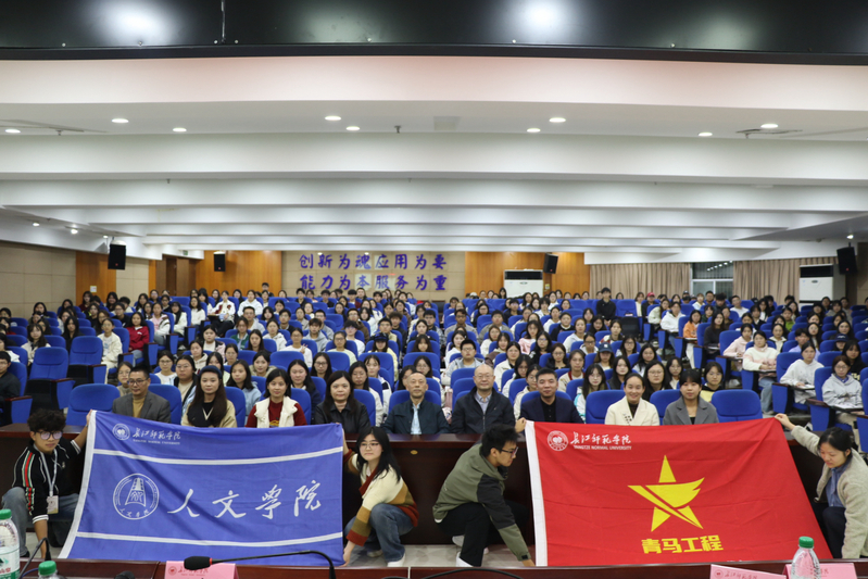为深入学习贯彻习近平总书记关于青年工作的重要思想和党的二十届四中全会精神,努力培养一批政治强、学习好、思维新、视野广、自律严的大学生骨干。11月7日,人文学院在鉴湖学术报告厅举行“青马工程”第二十期大学生骨干培训开班仪式暨第一场理论培训讲座。学院党委书记邓清华,团委书记、学工办主任、预科基地主任王勇,年级辅导员曾兴智、戴欣洋、孙秀丽、罗燕、宋虹摇、曾小芩及全体培训班学员参加。开班仪式由学院党委副书记、副院长王晓晖主持。