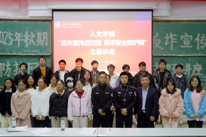 为进一步提升在校学生电信网络诈骗防范意识与识骗防骗能力,守护学生财产安全,营造平安和谐的校园环境。11月13日,人文学院联合涪陵区公安局新城区派出所在正心楼01阶梯教室举办2025年秋期“反诈宣传进校园 筑牢安全防护网”主题讲座。学院学工办主任王勇主持讲座,各班级负责人及寝室长代表参加。