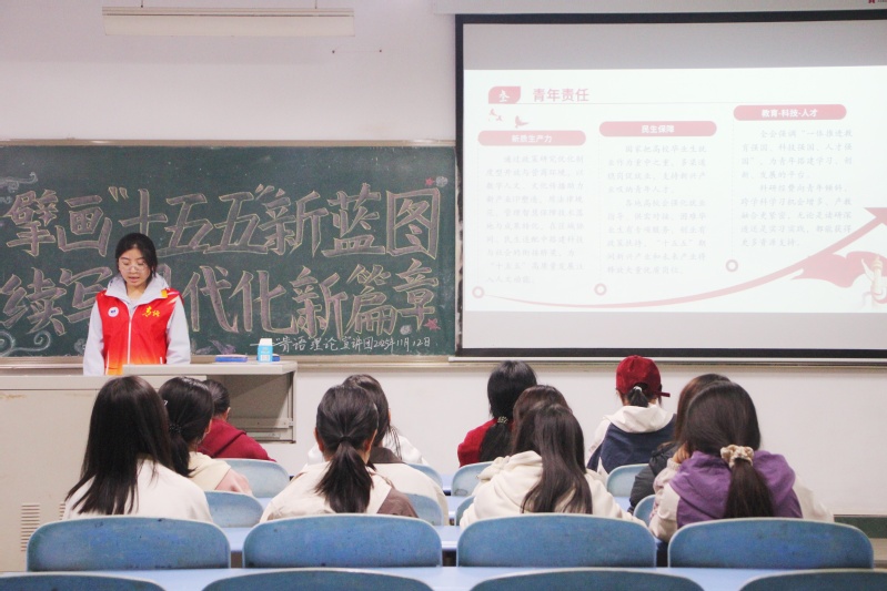 活动中,宣讲团成员通过PPT展示、视频展播等形式,向同学们介绍党的二十届四中全会通过的《中共中央关于制定国民经济和社会发展第十五个五年规划的建议》,宣讲“十四五”时期我国发展取得的重大成就和“十五五”时期经济社会发展的指导方针、主要目标、战略任务、重大举措和重要要求。