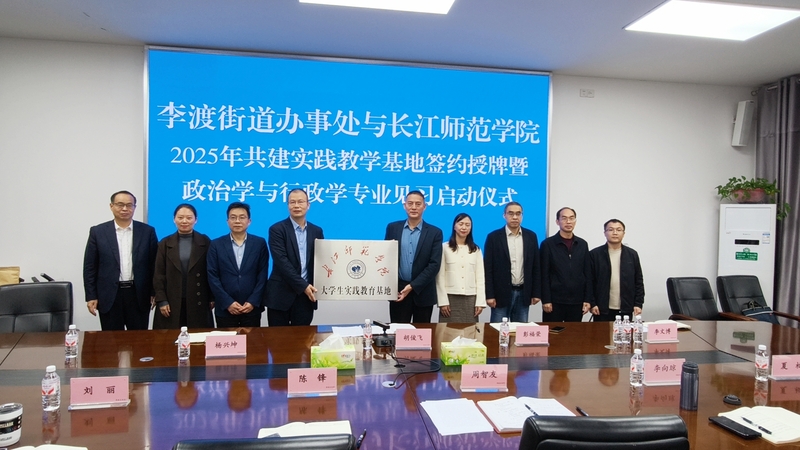 随后,胡俊飞代表学校向李渡街道授予“长江师范学院大学生实践教育基地”牌匾,彭福荣、周智友分别代表学院和李渡街道办事处签署共建实践教学基地协议,李文博介绍了2025年政治学与行政学专业见习岗位对接安排,专业见习学生代表裘怡聪作了表态发言。