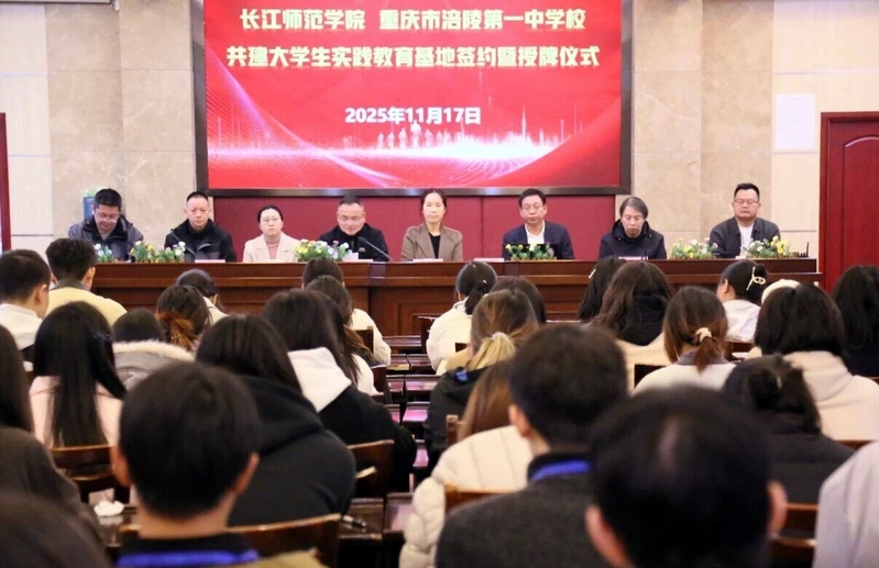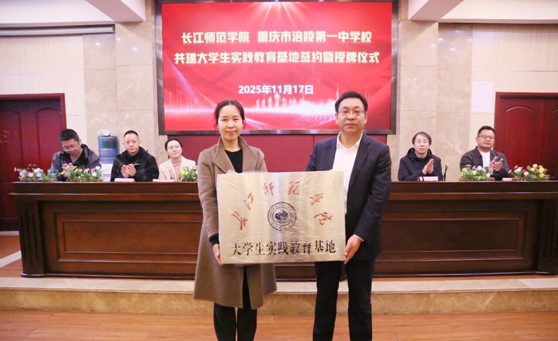 11月17日上午,人文学院与重庆市涪陵第一中学校举行共建大学生实践教育基地签约暨授牌仪式。重庆市涪陵第一中学校党总支书记张承沛,副校长王俊;长江师范学院教务处副处长刘筱,人文学院副院长胡建华,双方教师代表及2023级历史学专业见习学生代表参加。仪式由王俊主持。
