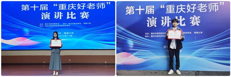 近日,第十届“重庆好老师”演讲决赛在西南大学隆重举行。经过激烈角逐,人文学院汉语言文学专业华欣悦同学、历史学专业孙源阳同学凭借优异表现,荣获比赛三等奖。