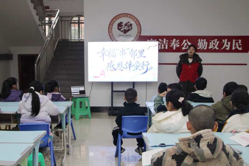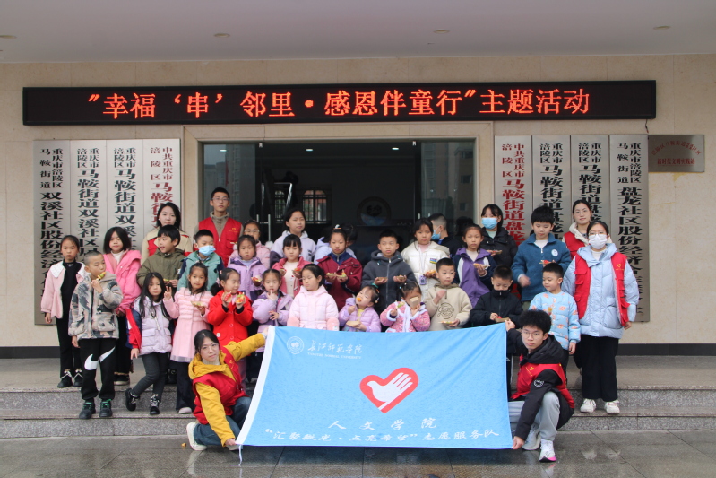 为进一步弘扬中华民族传统美德,厚植少年儿童感恩情怀,搭建邻里温情桥梁。11月22日,人文学院组织青年志愿者到涪陵区马鞍街道盘龙社区开展“幸福‘串’邻里·感恩伴童行”公益课堂活动。