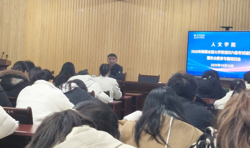 12月10日晚,人文学院在钩深楼南楼418会议室开展2025年秋期全国大学英语四六级考试诚信教育暨安全教育专题培训,学院学工办主任、团委书记、预科基地主任王勇及学生骨干代表参加。