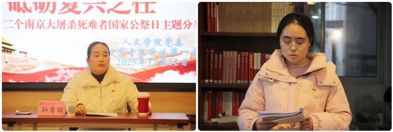会上,孙秀丽以“铭记历史之殇 砥砺复兴之路”为题,在第十二个南京大屠杀死难者国家公祭日到来之际,带领支部党员回顾了那段中华民族近代以来最沉重的历史。随后,孙秀丽领学了中国共产党第二十届中央委员会第四次全体会议公报和《中共中央关于制定国民经济和社会发展第十五个五年规划的建议》,要求支部党员深刻理解和把握“十五五”时期经济社会发展的指导思想、重大原则、主要目标、战略任务和重大举措、根本保证,在深学细悟中筑牢思想根基,在知行合一中锤炼过硬本领。