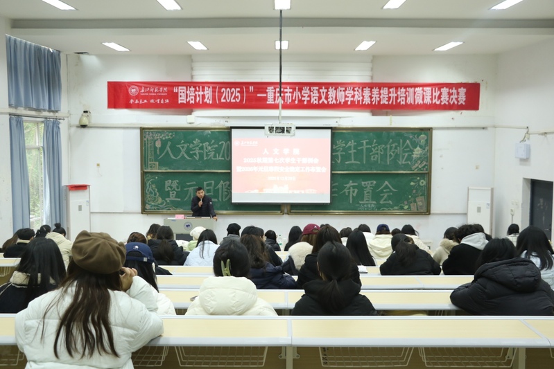 岁末年初是各类安全事故的易发期、多发期,为进一步做好岁末年初学生安全教育管理工作,有效防范化解各类安全事故风险,保障学生生命财产安全和校园稳定。12月29日,人文学院在诚意楼02阶梯教室召开2026年元旦寒假安全稳定工作布置会。学院学工办主任、团委书记王勇及全体学生干部参加。
