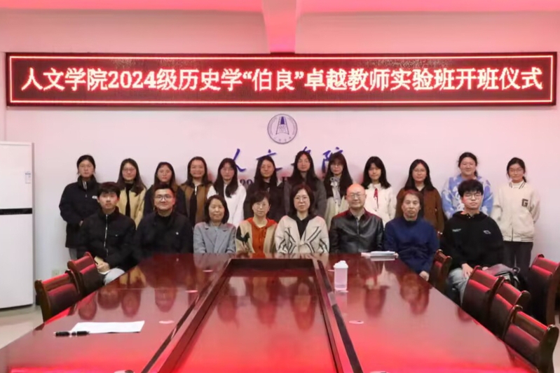 3月24日晚,人文学院在钩深楼南楼414办公室举行历史学专业2024级“伯良”卓越教师实验班开班仪式。学院党委副书记、副院长王晓晖,历史学系主任石怡,历史学系教师李艳、崔鲜香、罗自强、马帅及2024级“伯良”卓越教师实验班全体学员参加。开班仪式由石怡主持。