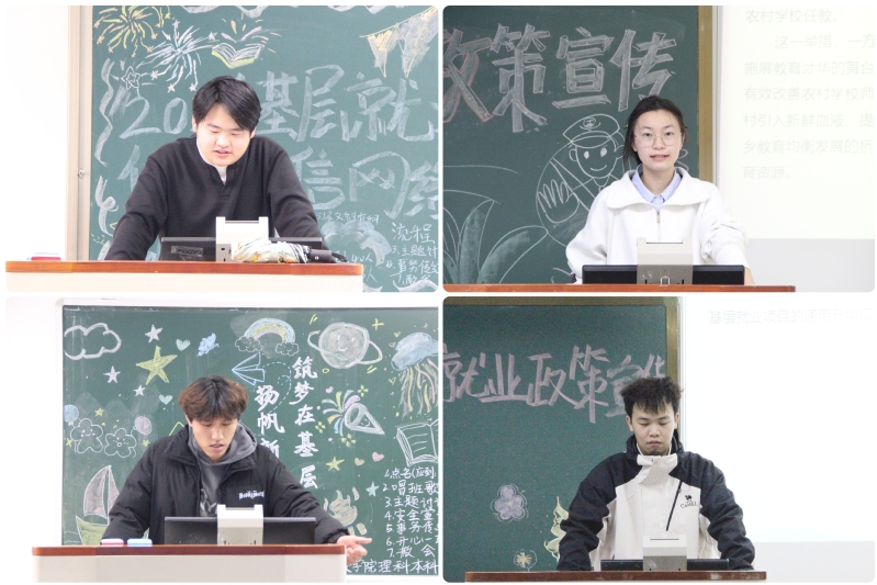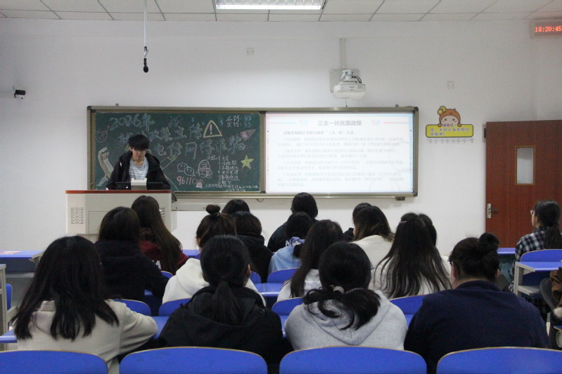 班会上,各年级辅导员、班级负责人通过PPT展示、案例讲解等形式,向同学们介绍了大学生志愿服务西部计划项目、选调生、“三支一扶”、特岗教师、应征入伍等基层就业项目,解读了相关报考条件、考试科目、招考程序等内容,呼吁同学们树立正确的成才观、职业观和就业观,立志到祖国最需要的地方建功立业。此外,各班级还集中学习了电信网络诈骗常见类型、电信网络诈骗案件特点等内容和国家反诈中心APP、96110预警劝阻专线等平台功能,呼吁同学们切勿轻信来历不明的电话、信息,避免上当受骗,营造“人人参与防诈,人人都懂防诈”的浓厚氛围。