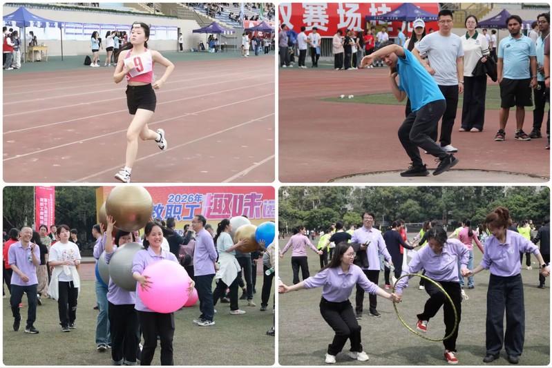 赛场上,人文运动健儿们奋勇争先、争创佳绩,100米、200米、400米、800米、5000米、接力赛,每一次起跑、每一次爆发,都是他们汗水的结晶;跳高、跳远、推铅球,他们挑战着一个又一个距离,无论结果如何,都是他们的高光时刻。他们用速度与力量、毅力与勇气、团结与拼搏展现青春热情与活力,他们用青春和汗水诠释“更高、更快、更强、更团结”的奥林匹克精神。教职工趣味运动会设置“同舟共济”“连球漫步”“赶猪回笼”“圈速传递”“灌篮高手”等五个项目,每个项目都需要团队成员协作完成,老师们默契配合、齐心协力,充分展现出学院教师“崇尚健康、热爱生活、团结协作”的良好精神风貌。